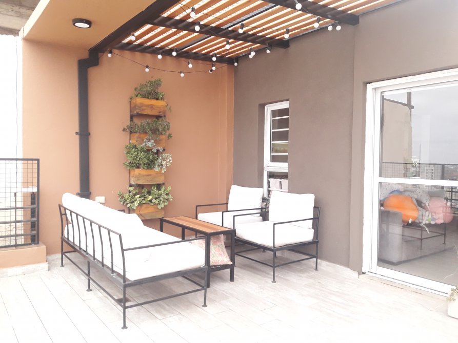 Living-Comedor c/piso porcelanato y salida a Balcón Aterrazado de 15 M2 al Frente (sector semi-cubierto c/techo de madera a la vista y amplio espacio descubierto) - Cocina Independiente con moderno equipamiento de muebles bajo y sobre mesada (mármol), ventanal al frente - Lavadero Cubierto e independiente c/espacio y conexión p/lavarropas, pileta de lavar, caldera dual instalada y ventanal.