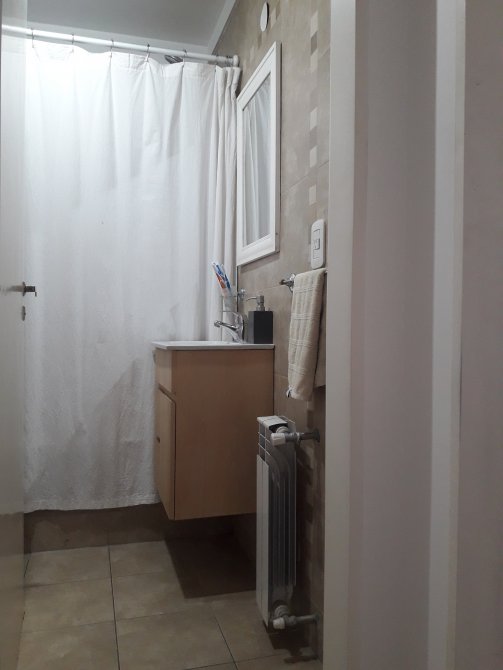 Hall Distribuidor con Placard empotrado de doble altura - Dormitorio con piso simil madera y ventanal al frente (persiana y rejas instaladas) - Baño completo c/bañera, moderno vanitory, piso y revestimiento cerámico (c/guardas decorativas) - Calefacción por radiadores, en cada ambiente!!