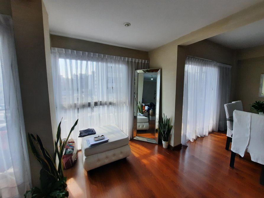 Entrada principal a distinguido Living-Comedor en "L" de 4,60 x 8,45 totalmente al frente con amplios ventanales y salida a balcon, piso flotante con zócalos de madera, detalles de molduras y techos bajos en yeso con iluminación embutida, muy buena entrada de luz y aire a traves de grandes ventanales en aluminio - Hermosa Cocina integrada al sector comedor por barra de granito, pisos y revestimientos cerámicos de calidad, muebles bajos en melamina con puertas de PVC molduradas y herrajes de aluminio, gran mesada en granito gris mara con bacha doble de acero inoxidable y griferia monocomando, entrada de servicio - Lavadero independiente totalmente instalado con ventilación exterior - Toilette con vanitory, pisos y revestimientos cerámicos de calidad - Doble circulacion a sector intimo desde cocina y living por cómodo distribuidor con pisos flotantes - Baño completo con bañera, pisos y revestimientos ceramicos de calidad con guardas vidriadas, vanitory de buenas dimensiones y ventilación natural - Dormitorio de 3 x 2,90 con piso flotante, amplio placard embutido con puertas corredizas en madera, ventanal con salida a balcon al contra-frente - Dormitorio de 2,80 x 2,40 con piso flotante y ventana al contra-frente - Destacada Suite de 3,10 x 3,10 con piso flotante y amplio ventanal con salida a balcon al contrafrente, comodo vestidor con piso flotante y baño completo con bañera, vanitory, ventilación natural y muy linda combinación de ceramicos de primera calidad en piso y revestimiento que jeraquizan el ambiente