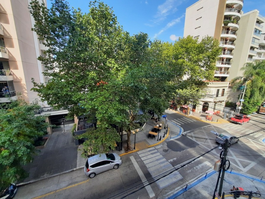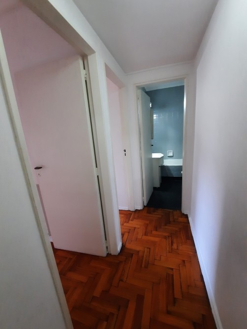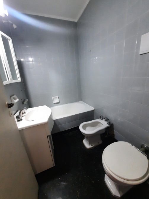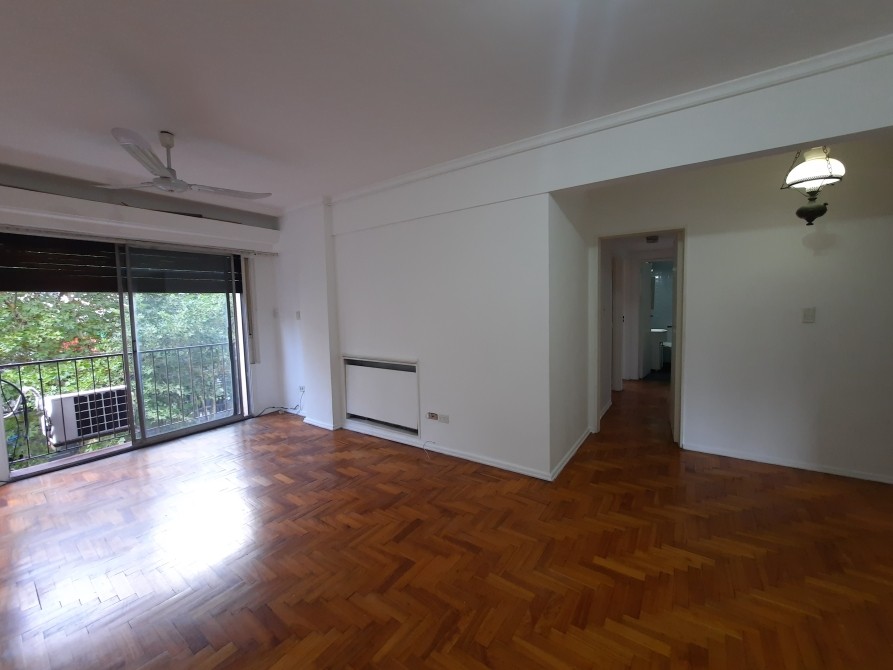 Cocina-Comedor equipada con muebles bajo mesada, ventanal, piso granito; Lavadero Cubierto e independiente - Living-Comedor de 5.95 x 3.35 con piso de parquet plastificado, balcón francés al frente (orientación Este), equipo de AA (Frío) - Pasillo Distribuidor - 2 Dormitorios de 3.15 x 3, ambos con ventanal al frente, piso de parquet plastificado, placard empotrado - Baño completo con bañera, piso granito y revestimiento con azulejos.