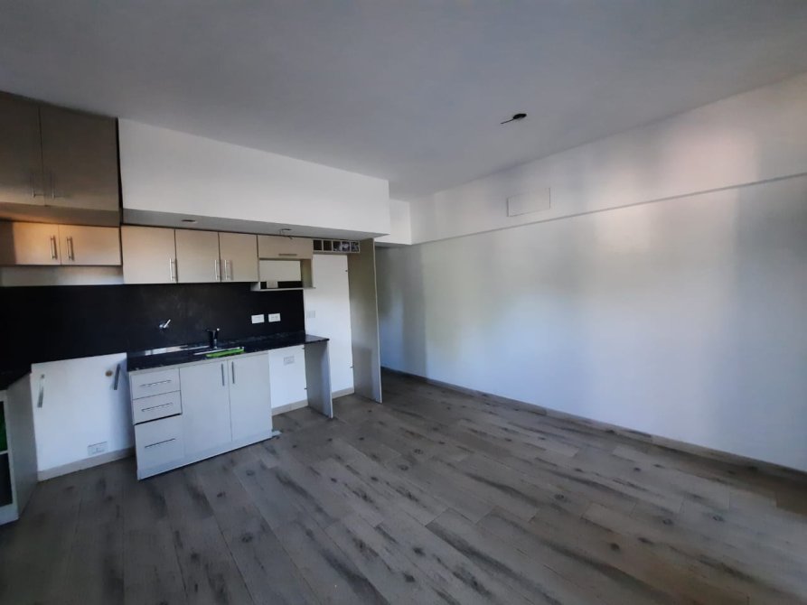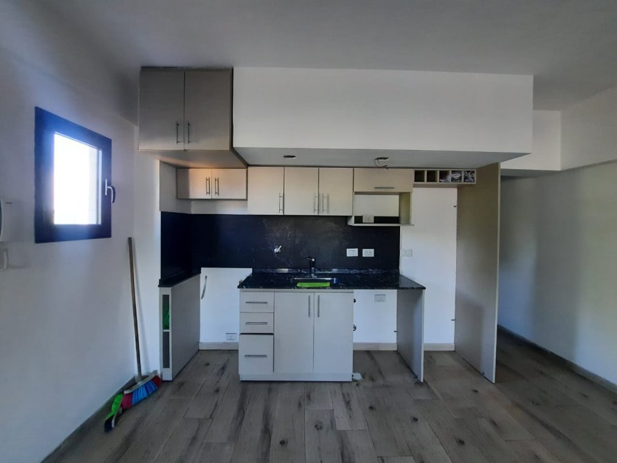 Cocina-Comedor integrada, basto y moderno equipamiento con muebles bajo y sobre mesada (incluye bodeguero, estante p/horno eléctrico-microondas), conexión p/lavarropas, ventana - Dormitorio con panel de vidrio fijo, placard de doble altura (sin interiores), salida a Balcón al contrafrente (orientación Norte), pre-instalación p/equipo de AA - Baño completo con muy lindos pisos y revestimiento, moderna grifería y sanitarios de primera línea, vanitory, ducha (c/receptáculo y mampara), ventana.