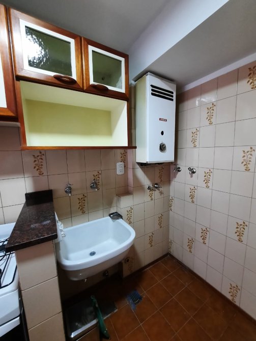 Luminoso living con pisos en cerámica, vista al frente y acceso a balcón - Cocina independiente muy bien equipada con amoblamientos bajomesada y alacenas superiores en madera y hechos a medida, mesada en granito, artefacto de cocina nuevo y calefon - Espacio para comer contiguo a la cocina con mucha luminosidad - Sector lavadero con espacio para lavarropas y mueble escobero - Baño completo con bañera - Dorm. alfombrado con vista a la calle y placard muy comodo empotrado y con interiores a medida