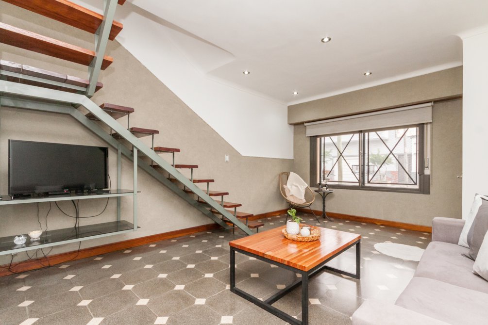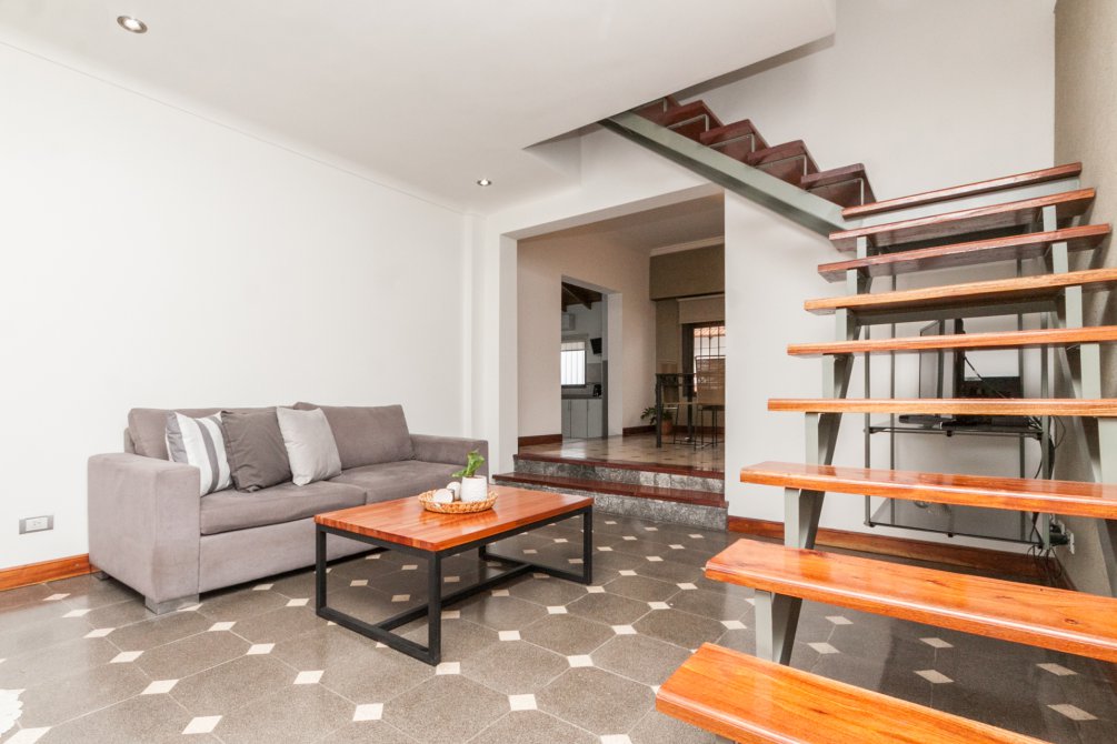 PA: acceso por escalera en madera hacia los Dormitorios que poseen pisos en madera flotante, aire acondicionado y balcon a la calle (el ppal. muy amplio y con un placard a medida de pared con interiores) - Baño ppal. en ceramica y espacio de bañera