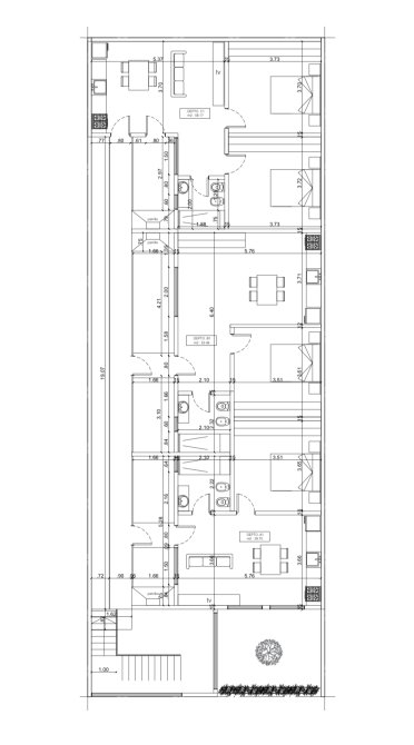 Pta. Baja: 6 unidades de 2 amb. de aprox. 35 mts. propios y cubiertos