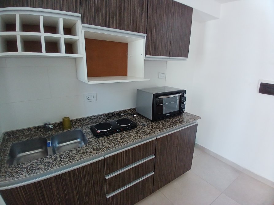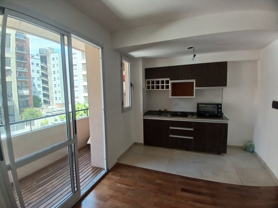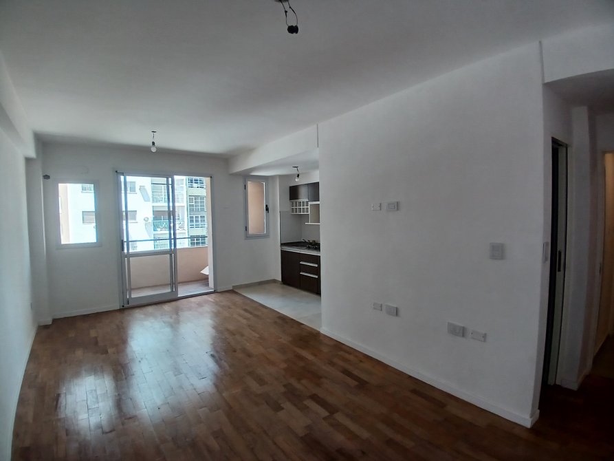 Living Cdor. con pisos en madera, muy buena luz natural con salida al balcon y semi integrado al sector de la cocina (sin artefacto) que posee amoblamientos completos y alacenas superiores a medida, masada en granito y revest en ceramica - Baño con finos revest en ceramica, vanitory y cuadro de ducha - Balcon al contra-frente y sector lavadero cubierto (termotanque electrico)