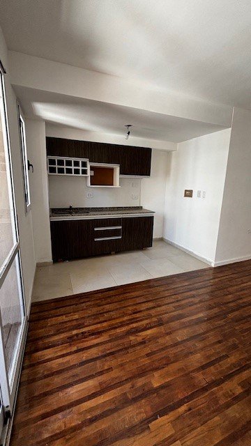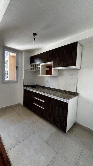 Living Cdor. con pisos en madera, muy buena luz natural con salida al balcon y semi integrado al sector de la cocina (sin artefacto) que posee amoblamientos completos y alacenas superiores a medida, masada en granito y revest en ceramica - Baño con finos revest en ceramica, vanitory y cuadro de ducha - Balcon al contra-frente y sector lavadero cubierto (termotanque electrico)