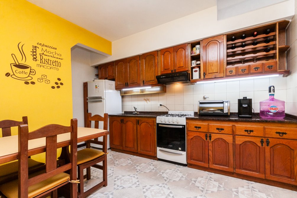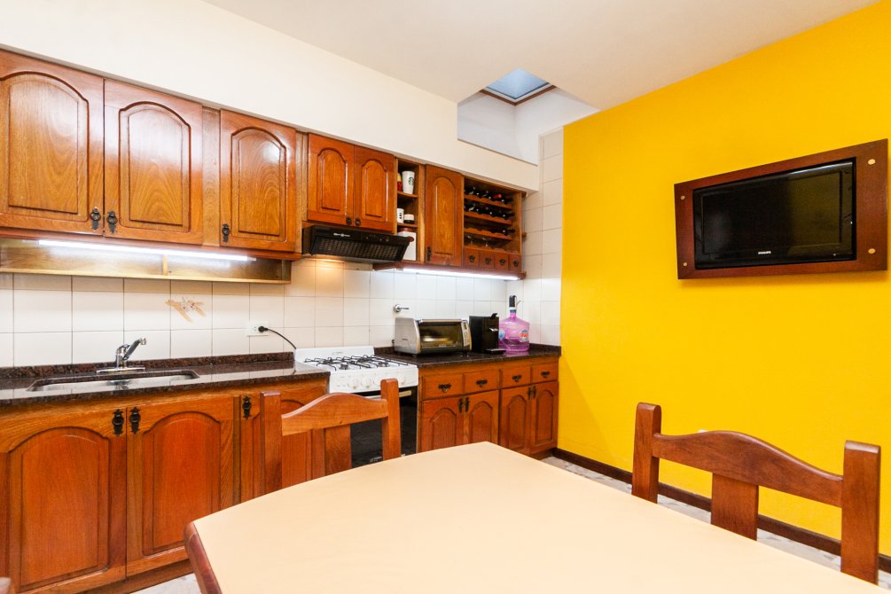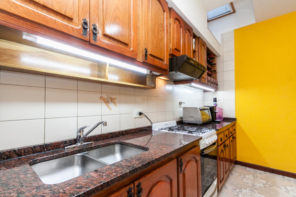 Garaga al frente con un porton automatico en madera - Entrada por una calida recepcion de ingreso la que posee aberturas en madera y se integra al sector de Living Cdor. 3,50 x 4,30, el que posee una estufa tipo hogar, pisos tarugados y aberturas combinadas en madera y vidrio que le otorgan mucha calidez edilicia y una linda estetica de ambientes - Cocina muy amplia y funcional 3,50 x 4,70, con sus pisos en ceramica, mesada en granito y provista de un completo amoblamiento bajomesada y alacenas superiores en madera y a medida - Amplio dormitorio con vista a la calle (mucha luz natural), pisos en madera, aire acondicionado, estufa tiro balanceado y un importante placard a medida - Baño en ceramica, bañera con mampara y un amplio sector antebaño con su respectivo vanitory y revest en ceramica -