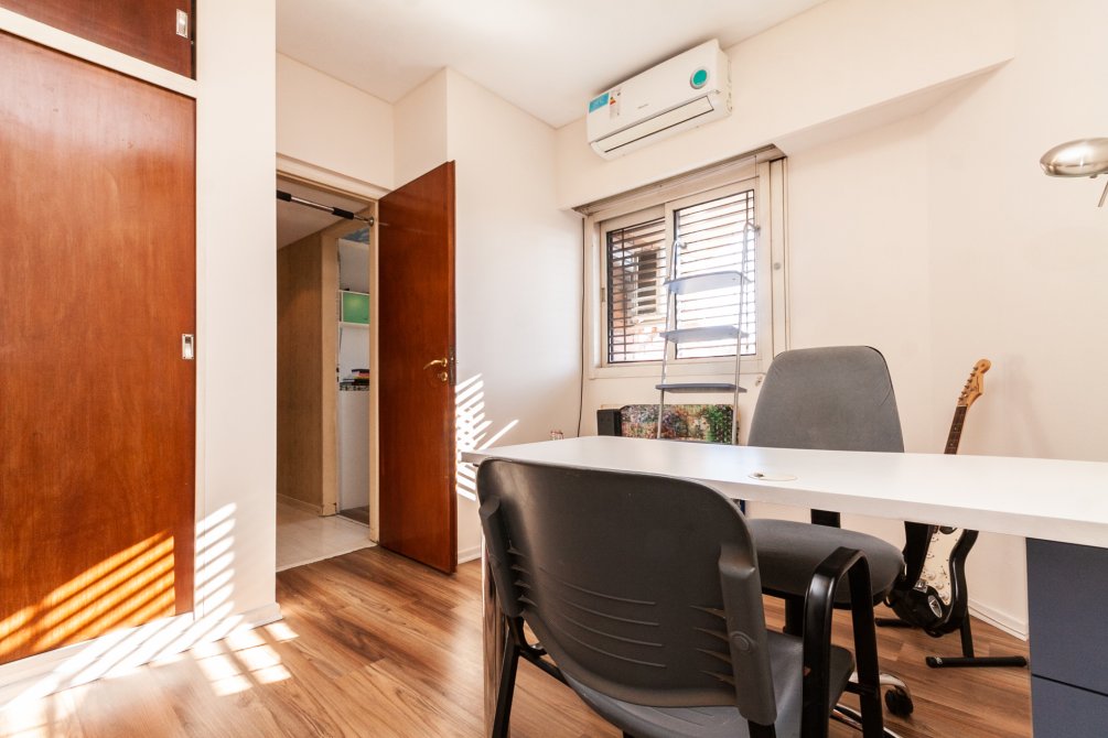 Amplio Living Cdor. en L con pisos en madera flotante totalmente moderrnizado hace unos años, salida al balcon corrido al frente, persianas tipo barrio y con muchisima luz natural por su orientacion y amplitud - Cocina con un moderno mobiliario a medida, totalmente revestida en ceamica y con una barra desayunador en granito que se integra al espacio Cdor. Diario de mucha funcionalidad - Lavadero indep y con termotanque - Toillete de recepcion modernizado y Baño ppal. con revest en ceramica y bañera con mamapra - 2 amplios dormitorios con pisos en madera, placard empotrado con interiores y todos con vista a la calle - Dorm. ppal. muy amplio, totalmente alfombrado, con baño en suite y un amplio sector vestidor