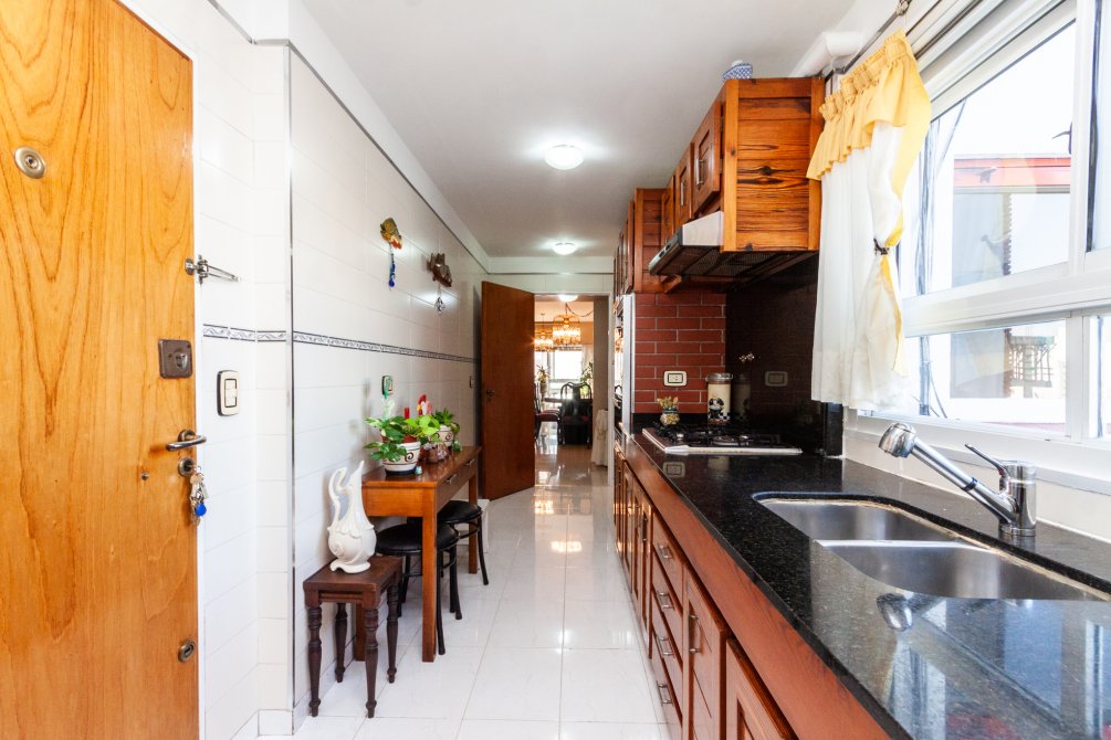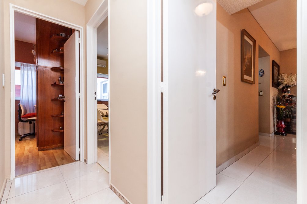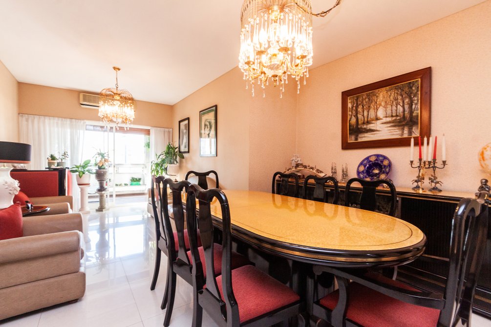 Amplio y luminoso Living Comedor con pisos en pocellanato, totalmente empapelado, aire acondicionado y acceso a un balcon corrido al frente con orientacion norte (la mejor) el que posee cerramientos vidriados - Cocina muy bien equipada, con revestimientos en ceramica, doble mesada en granito, horno y anafe y un funcional mobiliario a medida tanto en alacenas superiores como el bajomesada - Para destacar la luminosidad de la misma al igual que el sector Cdor. Diario, el que posee aire acond. y mucha luz natural - Lavadero indep y termotanque - Toillete con revest. en ceramica y vanitory - Baño ppal. compartimentado y con sector antebaño (todo muy amplio), bañera con mampara y vanitory en marmol - 2 amplios Dormitorios que dan al frente, ambos con acceso al balcon, totalmente empapelado y con placard de pared - 3er. Dormitorio al contra-frente con piso de parque y mobiliario de escritorio a medida - Placard con muchos espacio en pasillo de distribucion