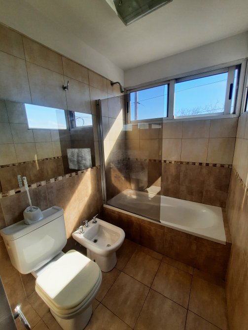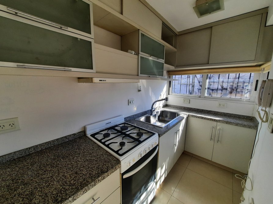 1° Planta: hermoso Living Cdor. de 6.80 x 2.85 con piso de porcelanatto, salida a balcón al frente, equipo de aire (frío) y estufa tiro balanceado - Funcional y comoda Cocina de 3.35 x 1.45 equipada con muebles bajo mesada, alacena superior, spar, amplio ventanal al frente - Toilette con pisos y revestimientos cerámicos - Patio aterrezado de 4 x 3.50 con parrilla. - Muy linda luz natural